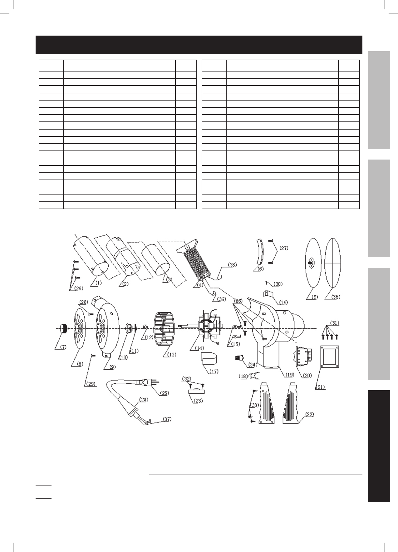 THE MANUFACTURER AND/OR DISTRIBUTOR HAS PROVIDED THE PARTS LIST AND ASSEMBLY DIAGRAM
