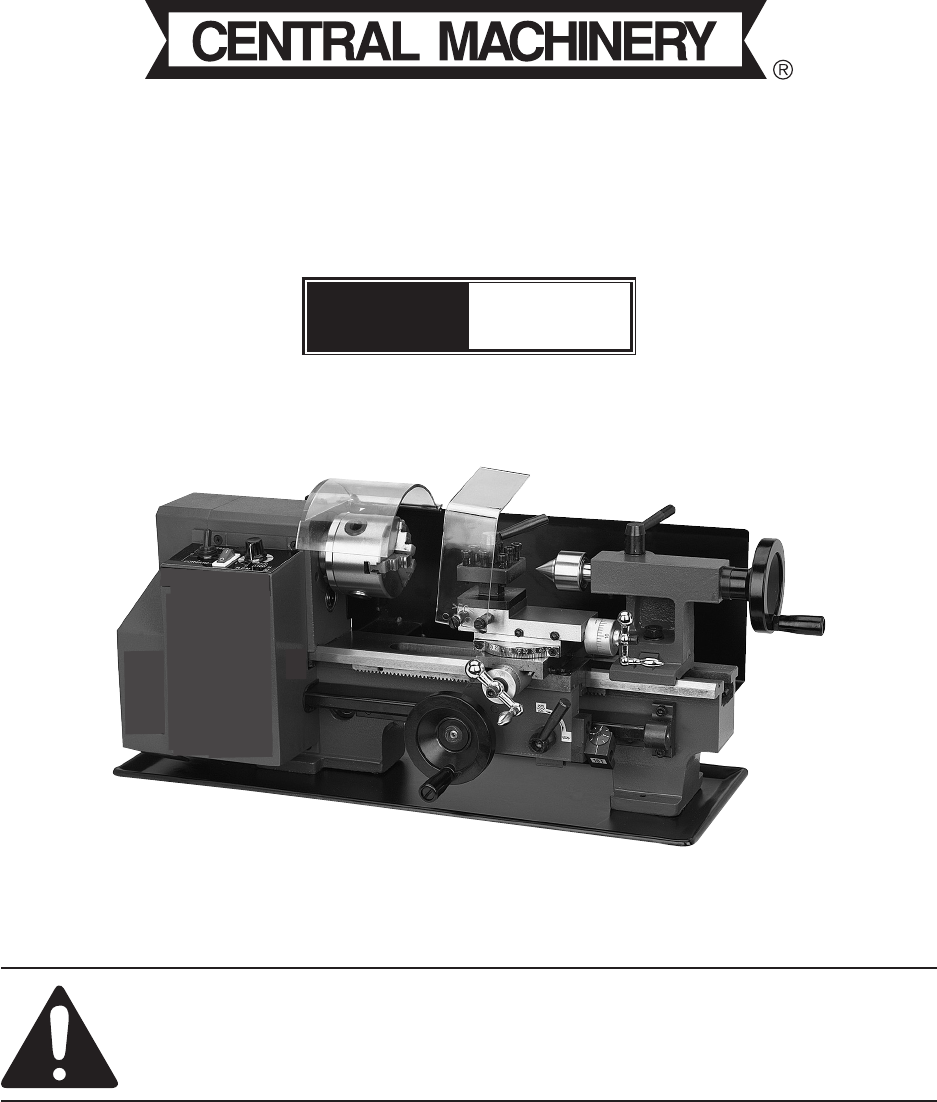 Manual for the 93212 7 in. x 10 in. Precision Benchtop Mini Lathe 93212 Mini Lathe - 7 x 10 Precision Mini Lathe