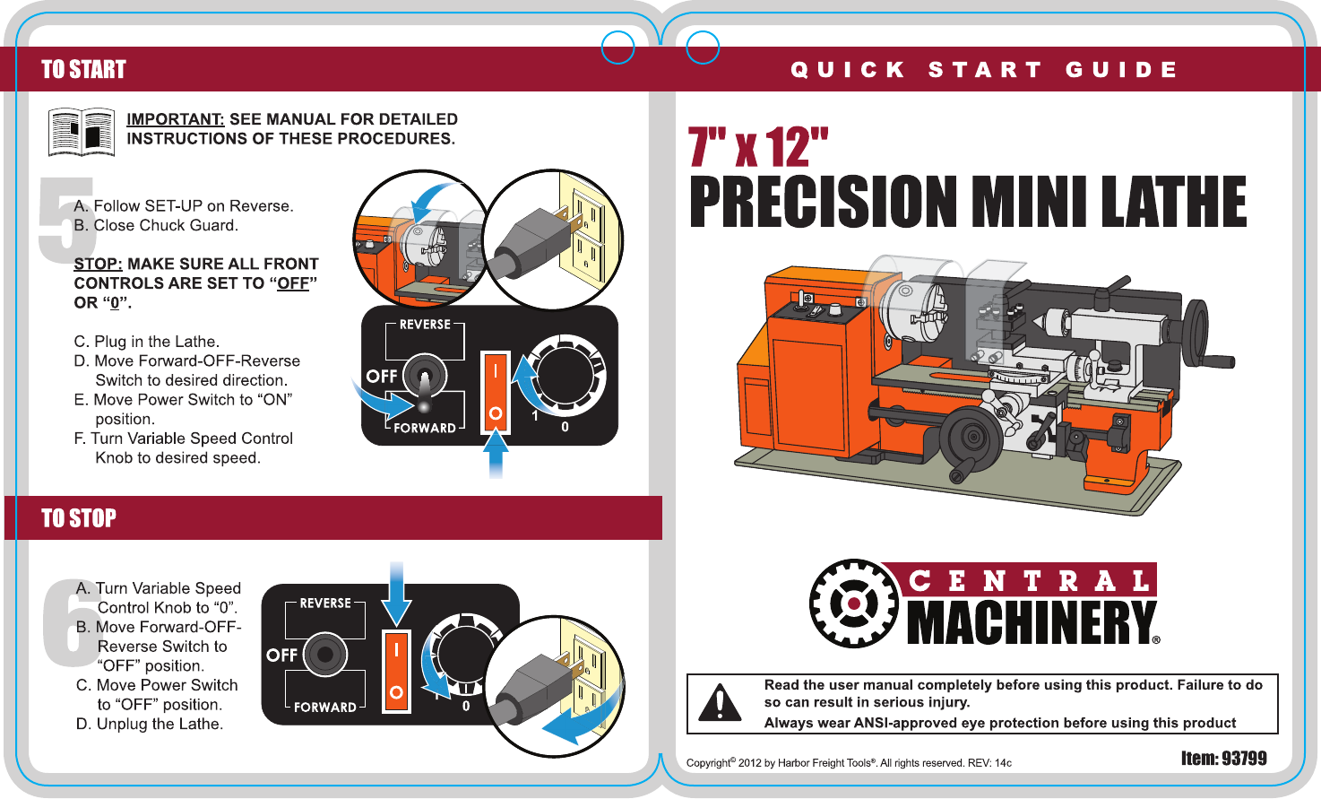 Harbor Freight 7In X 12In Precision Benchtop Mini Lathe Quick Start Manual