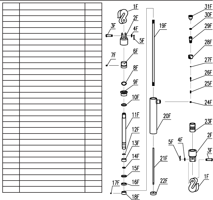 Parts List and Diagram F - 2 Ton Pull Ram with Spring