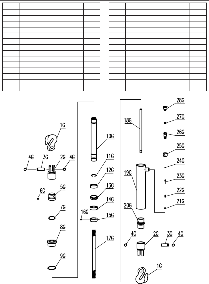 Parts List and Diagram G - 5 Ton Pull Ram with Spring