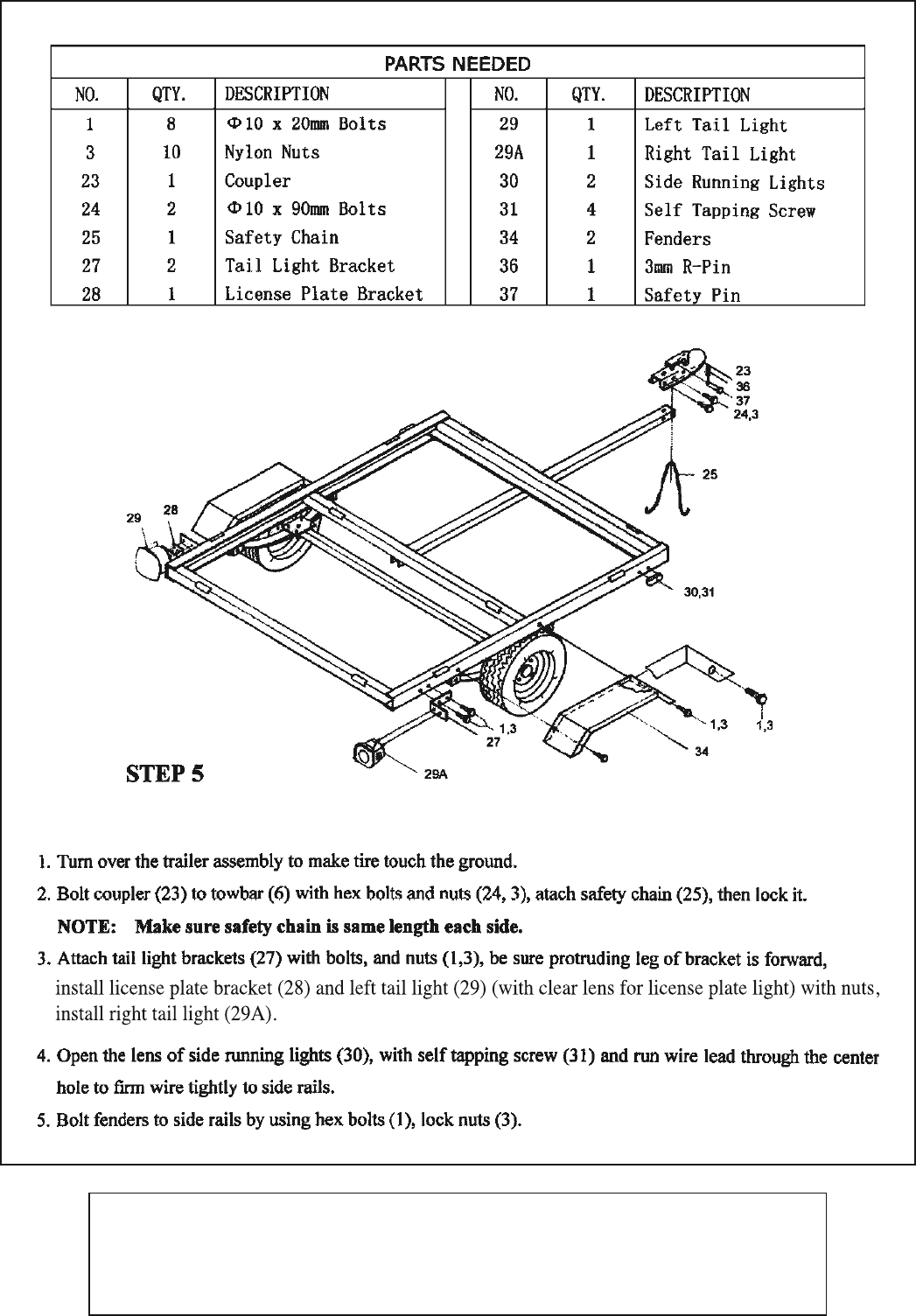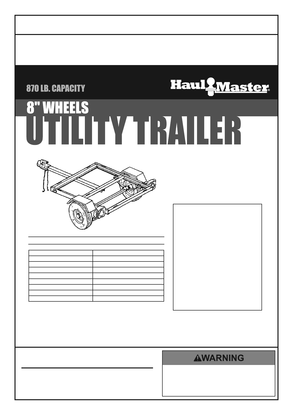 Harbor Freight 870 Lb Capacity 40 In X 49 Utility Trailer Product Manual