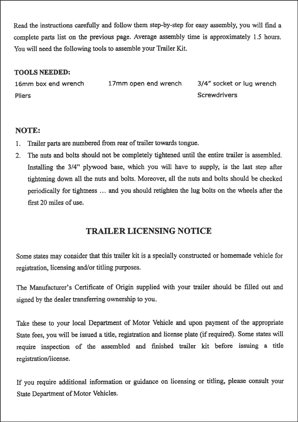 3. Follow the Trailer Licensing notice to properly license this trailer.