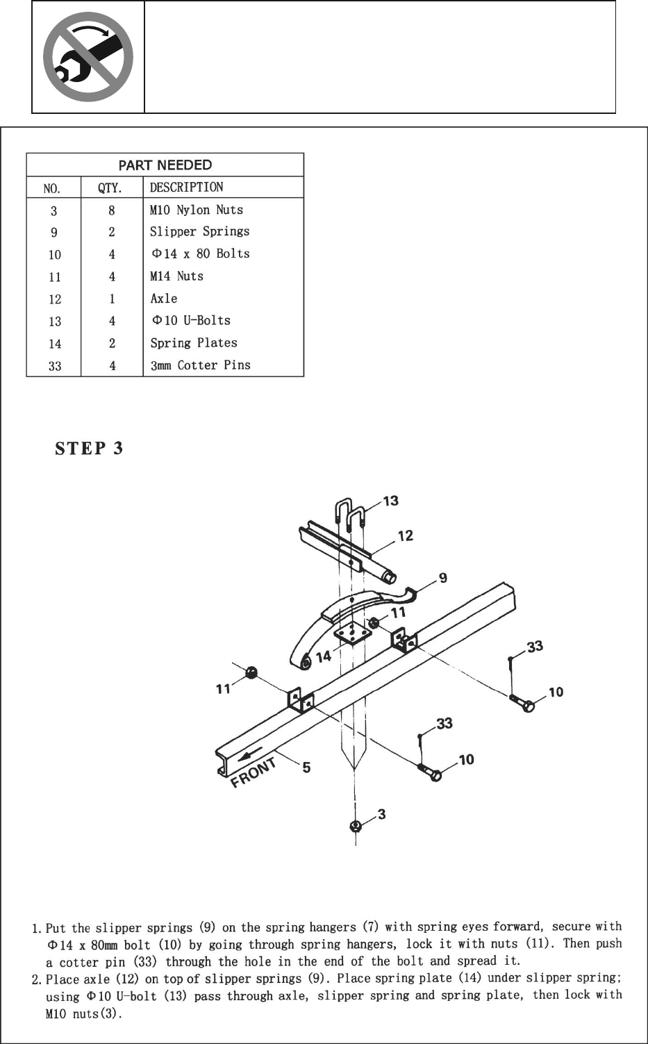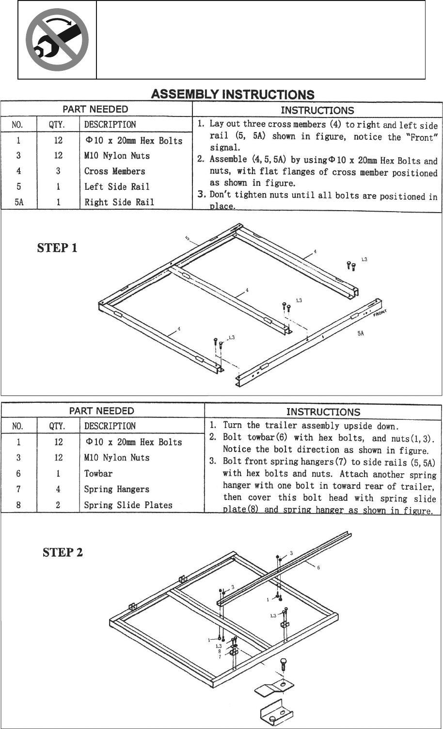 TIGHTEN ALL HARDWARE!