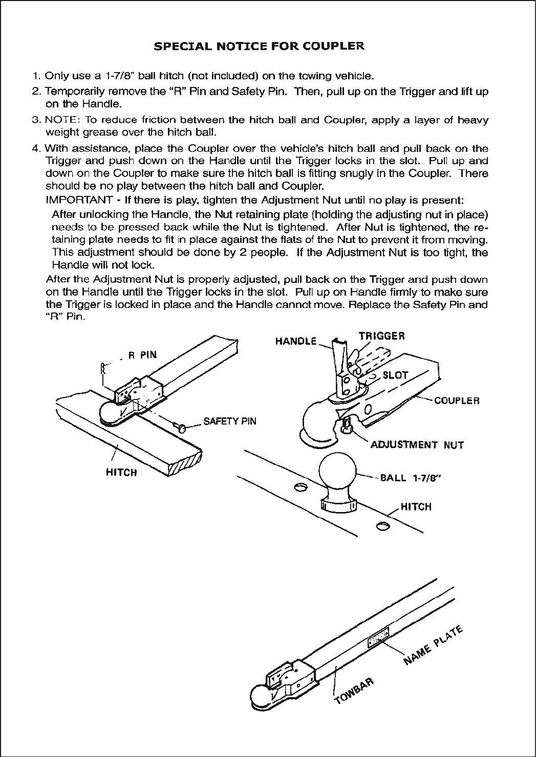 This trailer’s Hitch Coupler MUST be