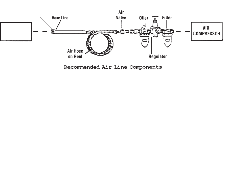 removed from the tool or machine work surface before attaching to an air source.