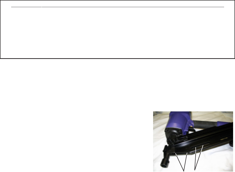 loaded and may cause parts or a nail to fly out of the Nailer.