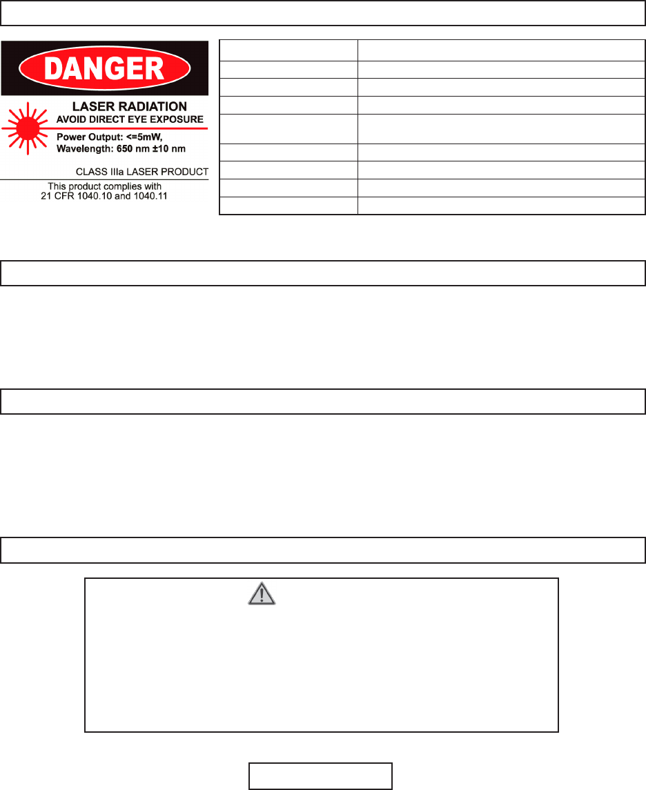 2. Before each use: Inspect the general condition of the Laser Level. Check for