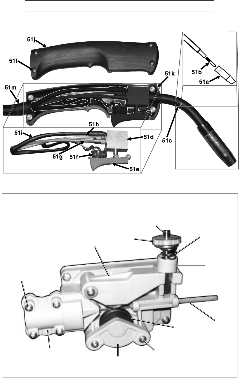 Verify that Contact Tip (51b) is the proper size for the welding wire used. Check that the