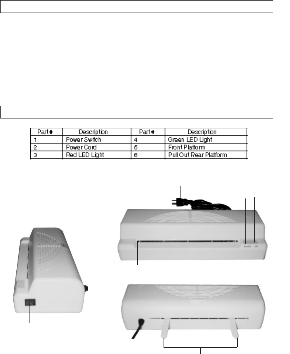 1. WARNING! Make sure the Power Switch (1) of the Laminator is in its