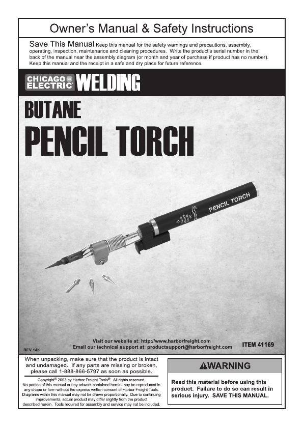 Harbor Freight Butane Pencil Torch Product Manual