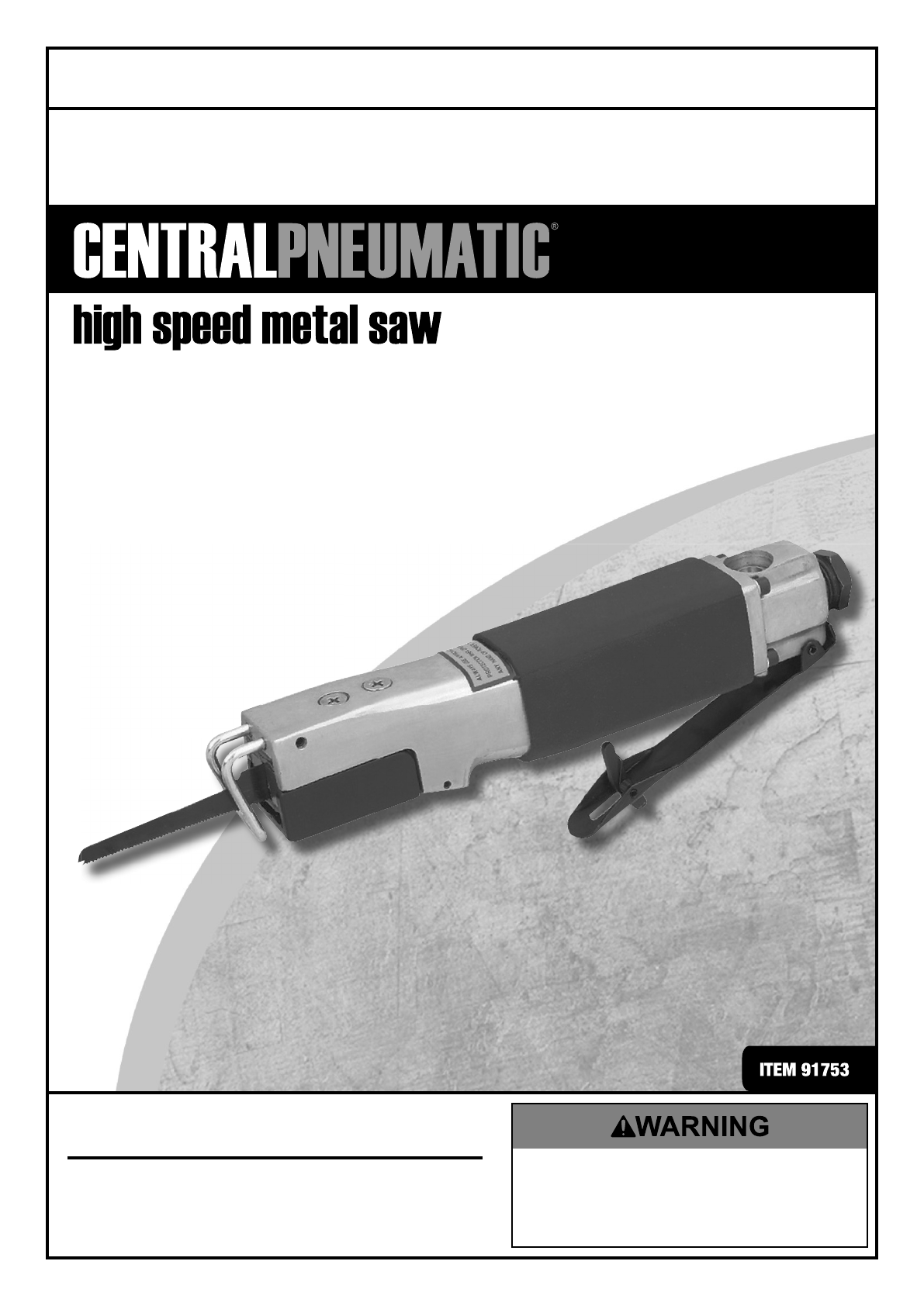 Manual for the 91753 High Speed Metal Saw 91753 High Speed Metal Saw