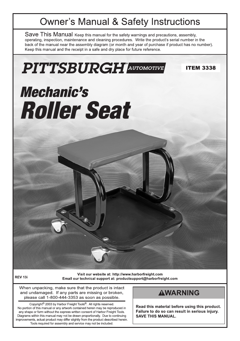 : Harbor-Freight Harbor-Freight-Mechanics-Roller-Seat-Product-Manual-723508 harbor-freight-mechanics-roller-seat-product-manual-723508 harbor-freight pdf