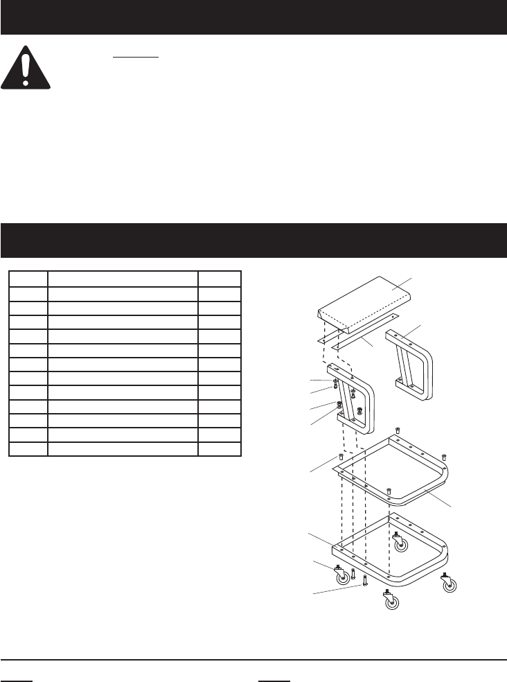 Manual for the 3338 Mechanic's Roller Seat 03338 Mechanic's Roller Seat