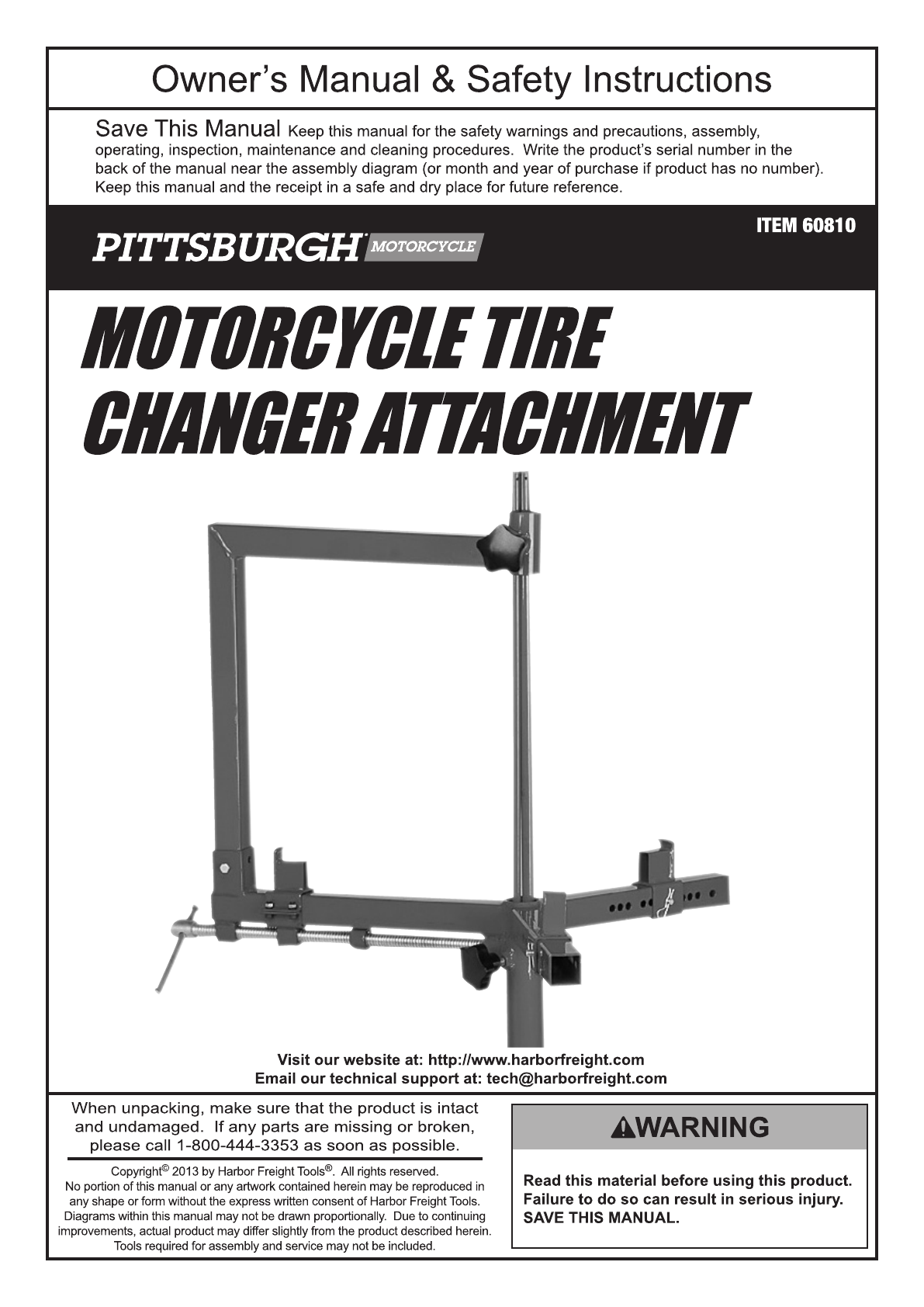 Harbor Freight Motorcycle Tire Changer Attachment Product Manual