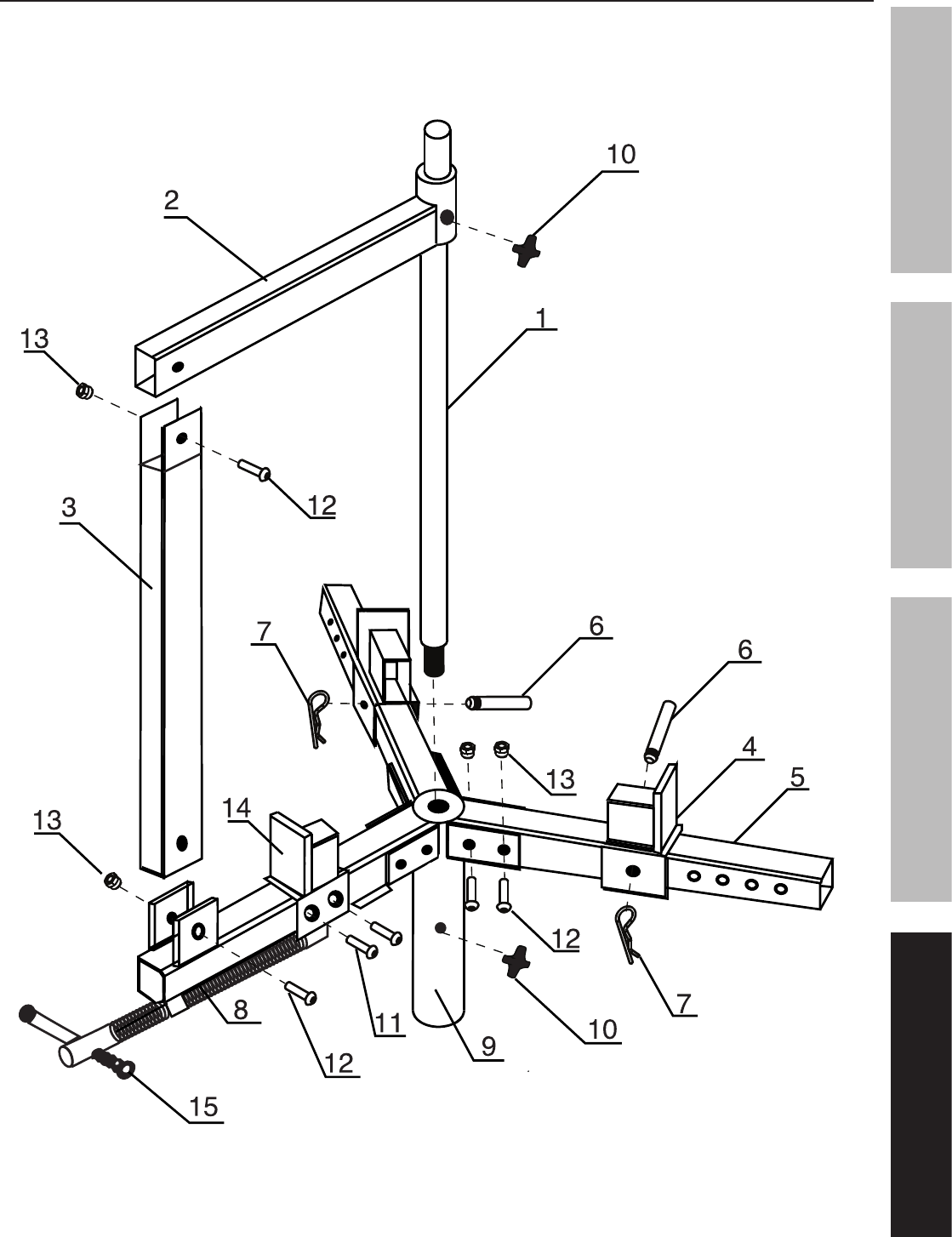 Tubes (5) to Base (9) with Bolts (12) and Nuts (13).