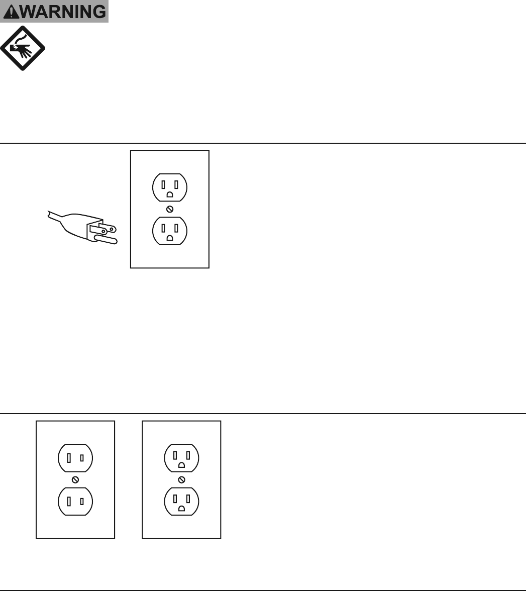 facility before use. If the plug will not fit the outlet, have a proper outlet installed by a