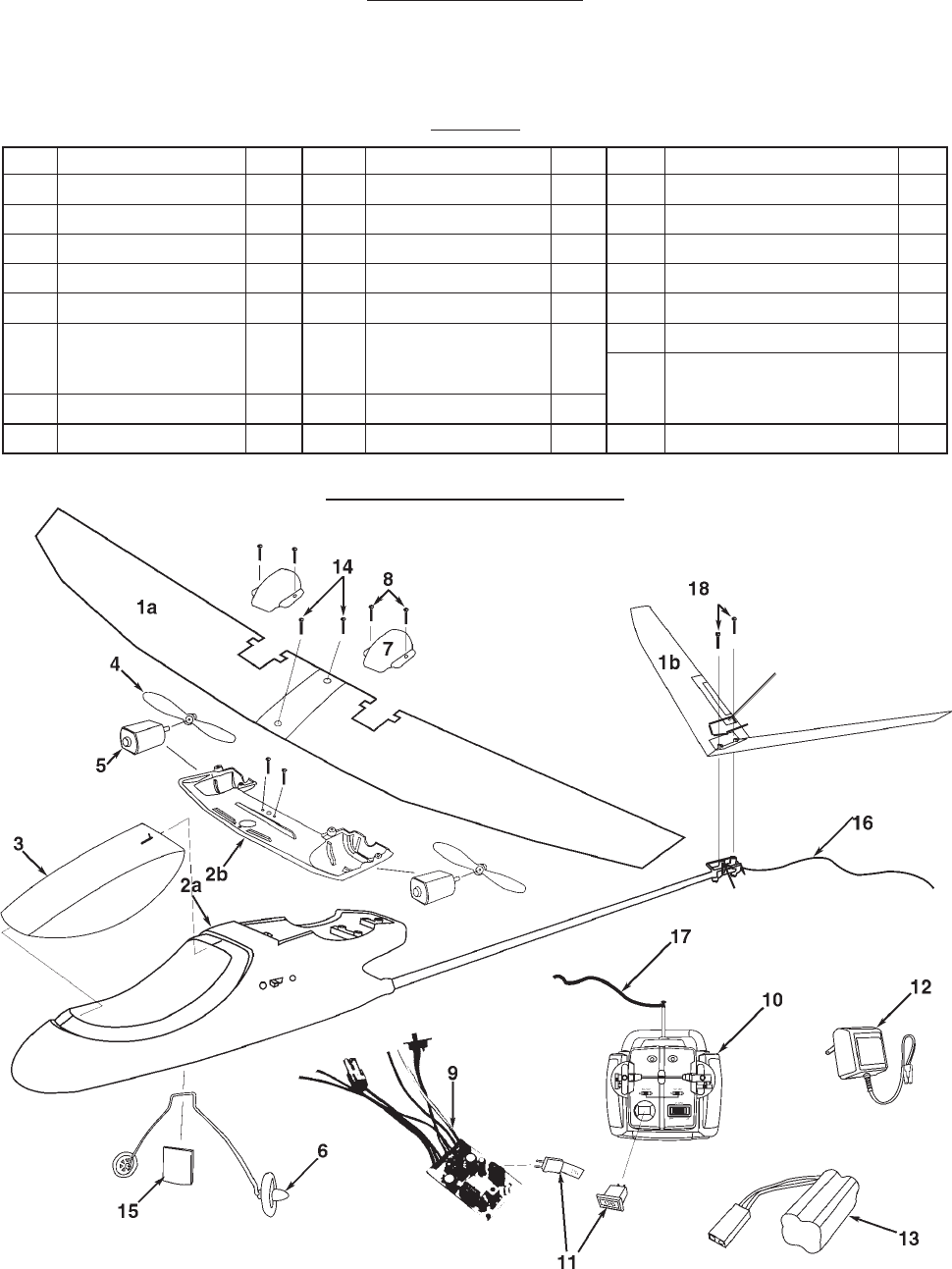 When unpacking your Airplane with Radio Controller, check to make sure the parts listed on the