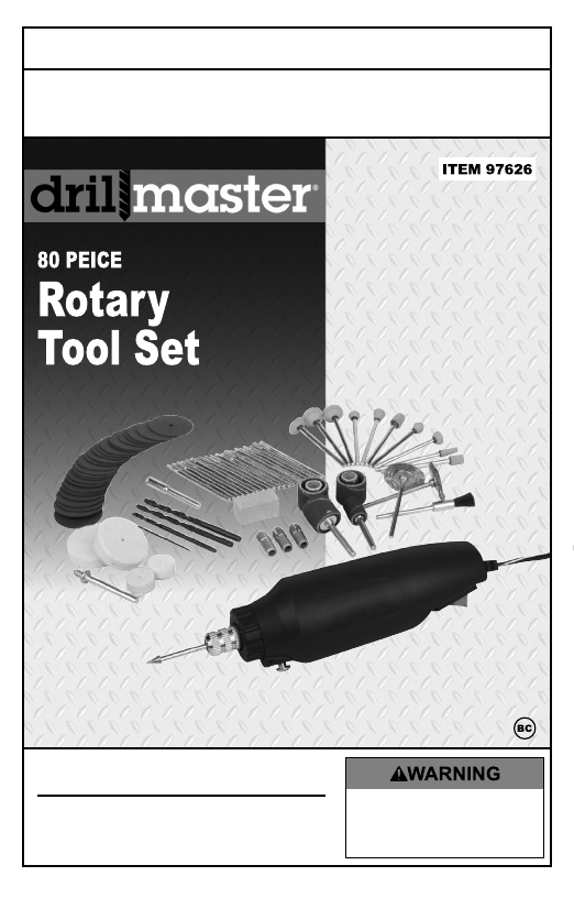 Manual for the 97626 80 Piece Rotary Tool Kit 97626 Rotary Tool Kit - 80 Piece Set