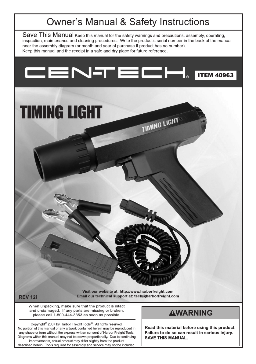 Harbor Freight Xenon Advance Timing Light Product Manual