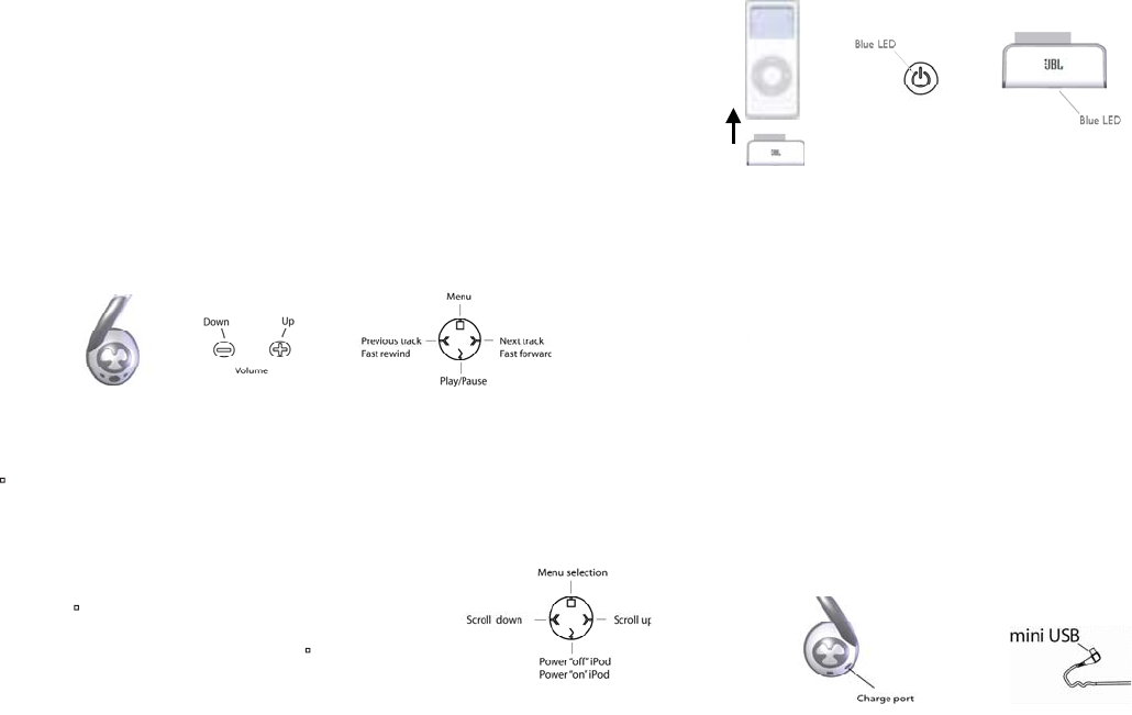 audio device to your headphones. With the included Bluetooth® transmitter attached to your iPod,® you can stream music to your JBL 610 wireless headphones