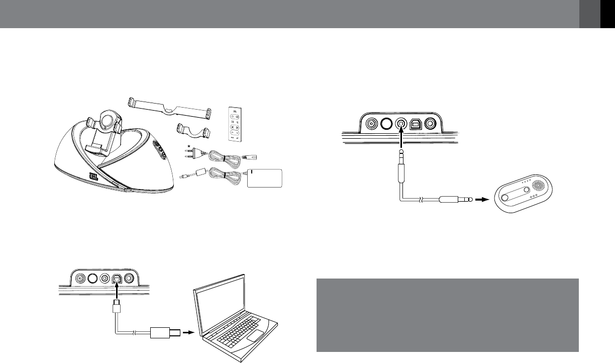 to the JBL OnBeat Air Audio In connector and to the source component’s audio output.