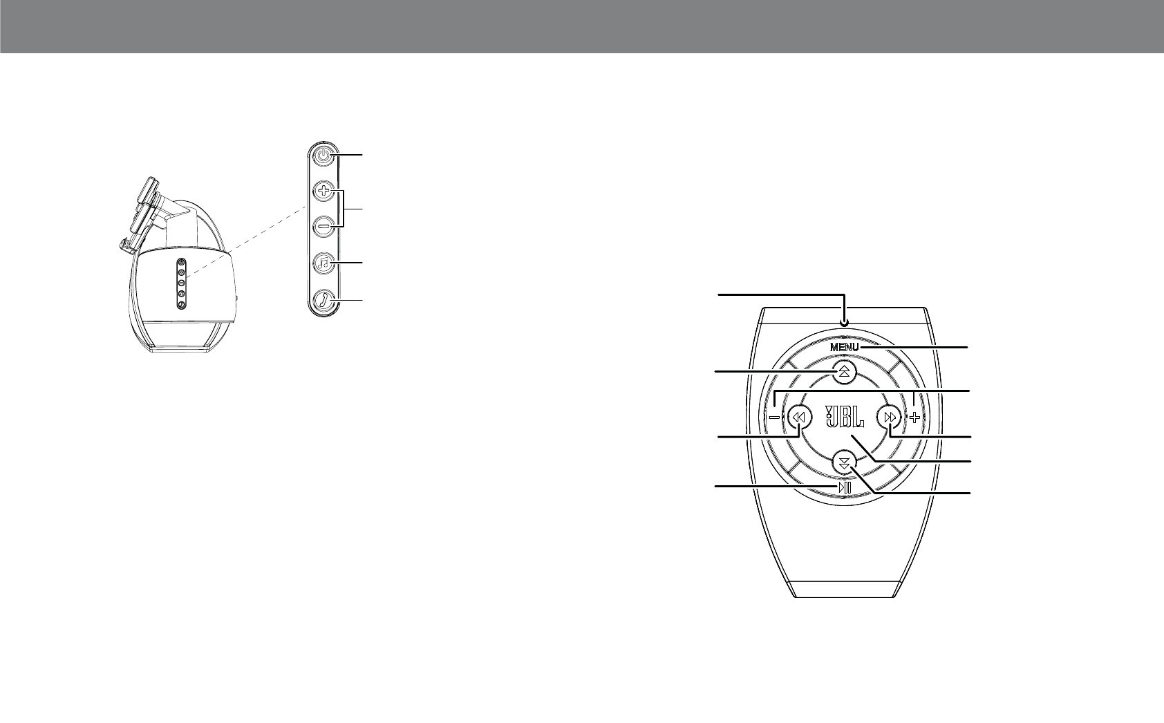 Power button: Press this button to turn the JBL OnBeat Xtreme on. The