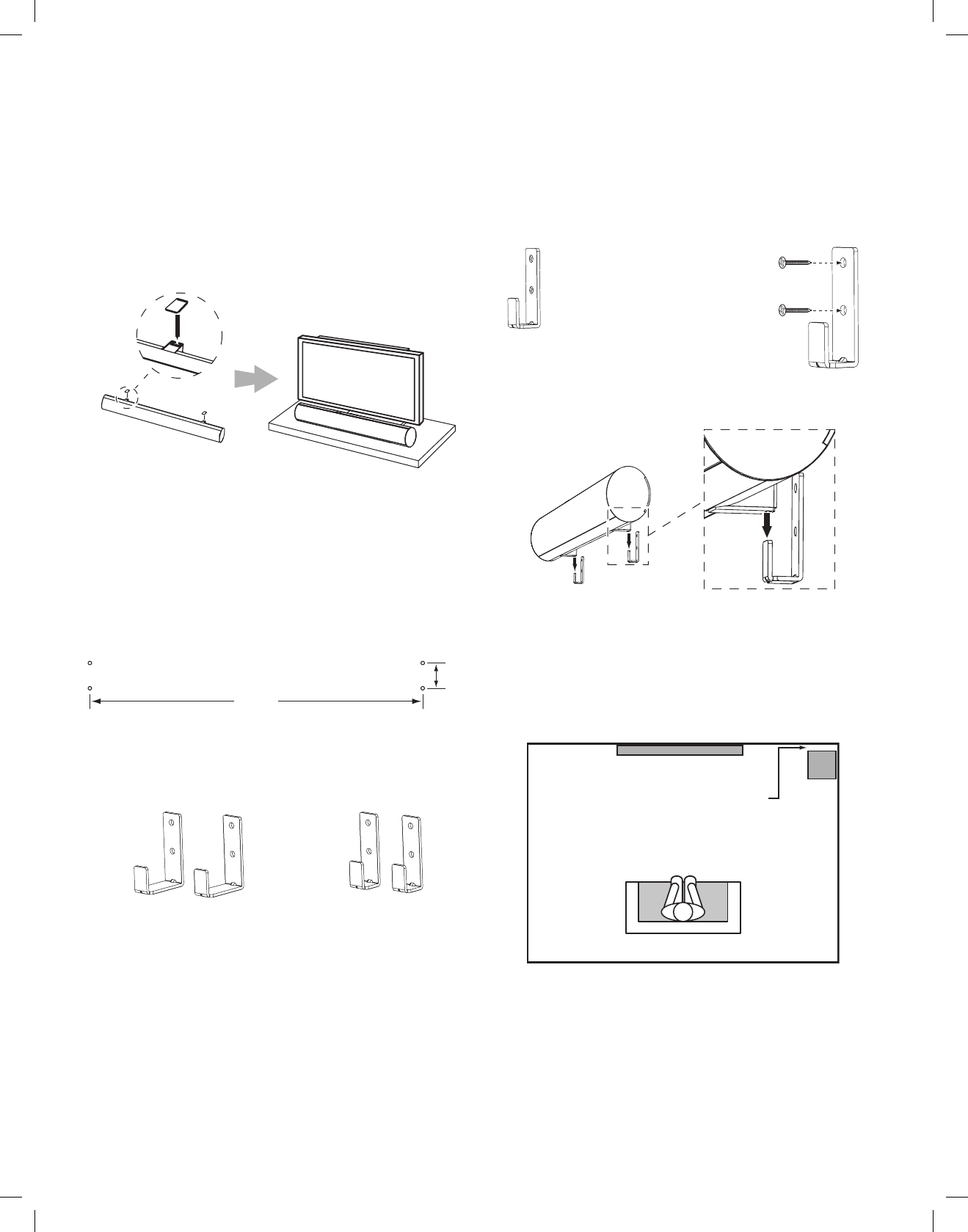 soundbar on a table in front of your TV; also, the system includes hardware that makes it