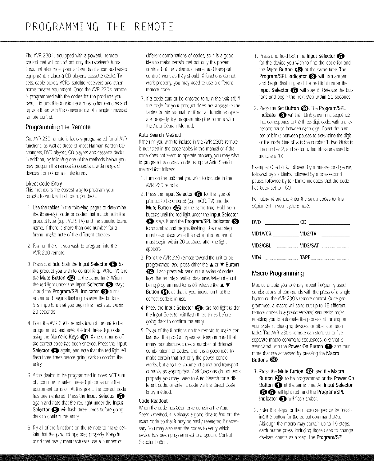User Manual: Harman Kardon AVR230 AVR230 HARMAN KARDON RECEIVER - Manuals and Guides View the owners manual for your HARMAN KARDON RECEIVER #AVR230. Home:Electronics Parts:Harman Kardon Parts:Harman Kardon RECEIVER Manual