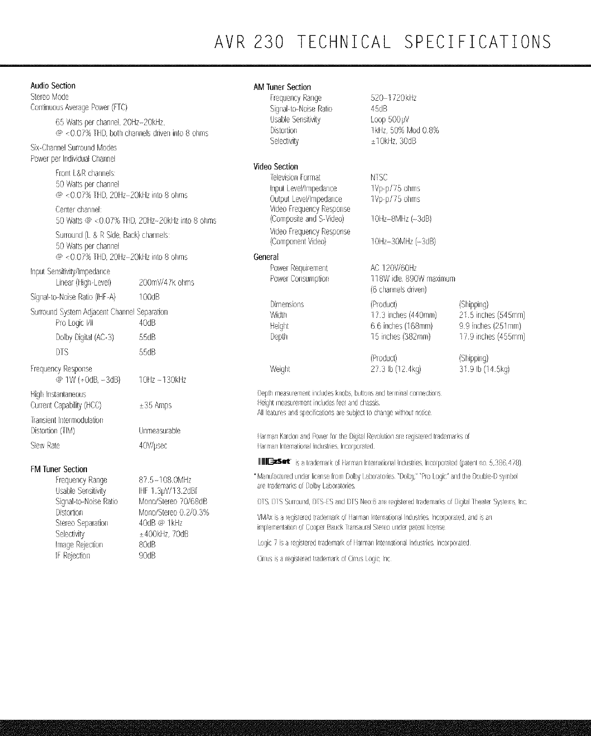 Thankyou for choosingitarmanKardon<_! _o/theultimateinflexibilit tlmAVR230 fea_ I Awlde rangeof digitatandmatrixsurround