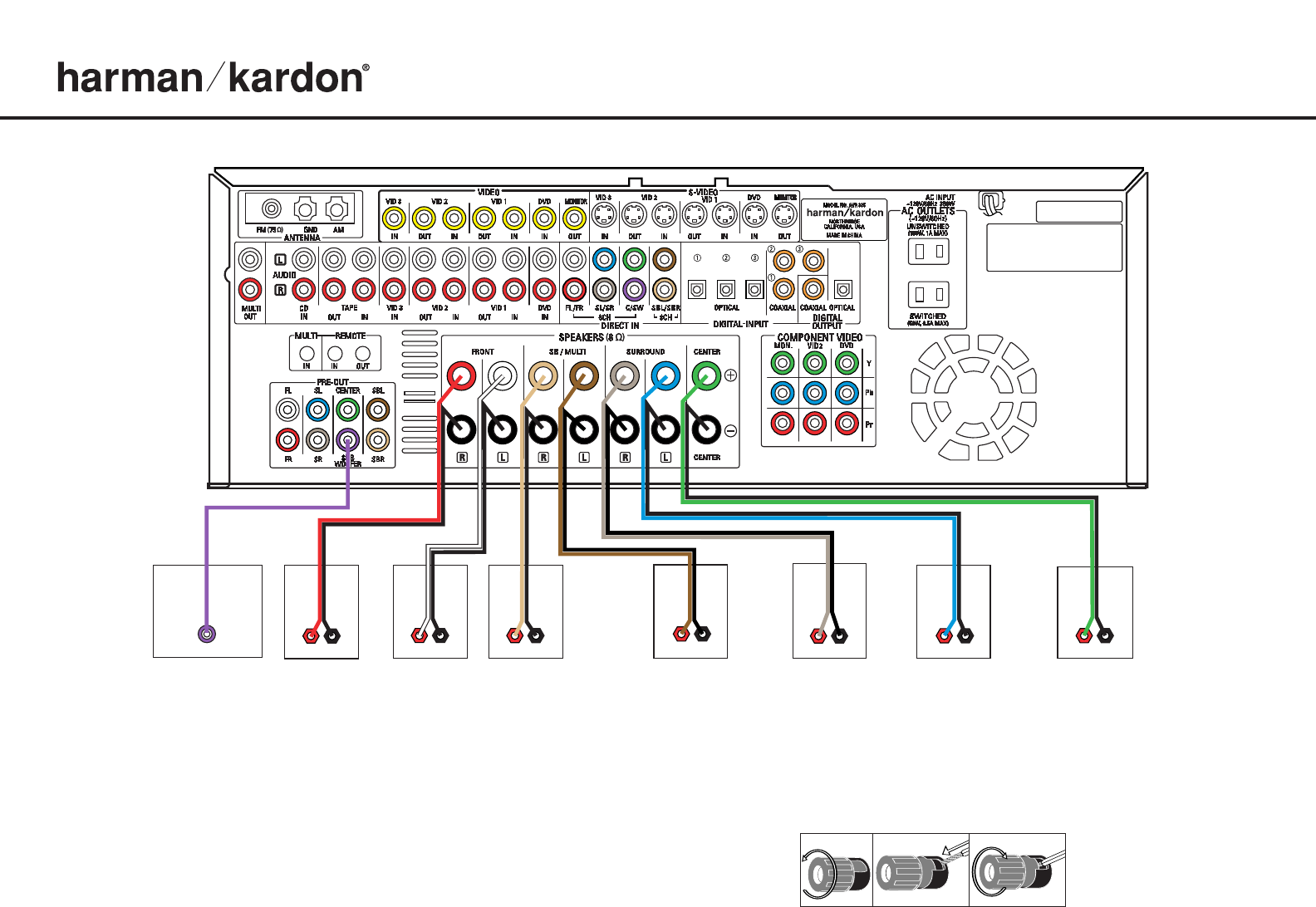 Step 2. Connect the speakers to the receiver: red (+) on speaker to colored (+) on receiver and black