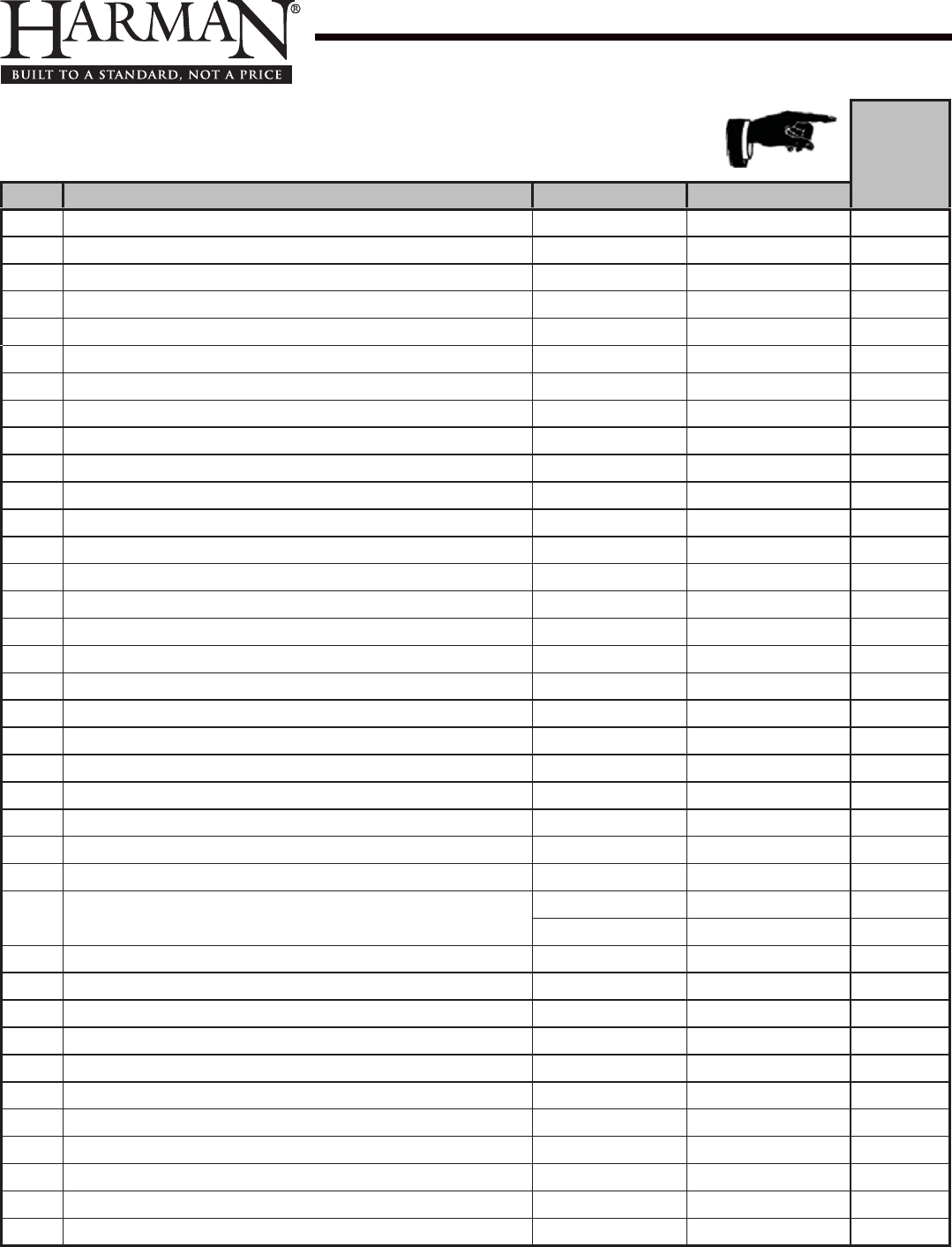 ITEM Description COMMENTS PART NUMBER
