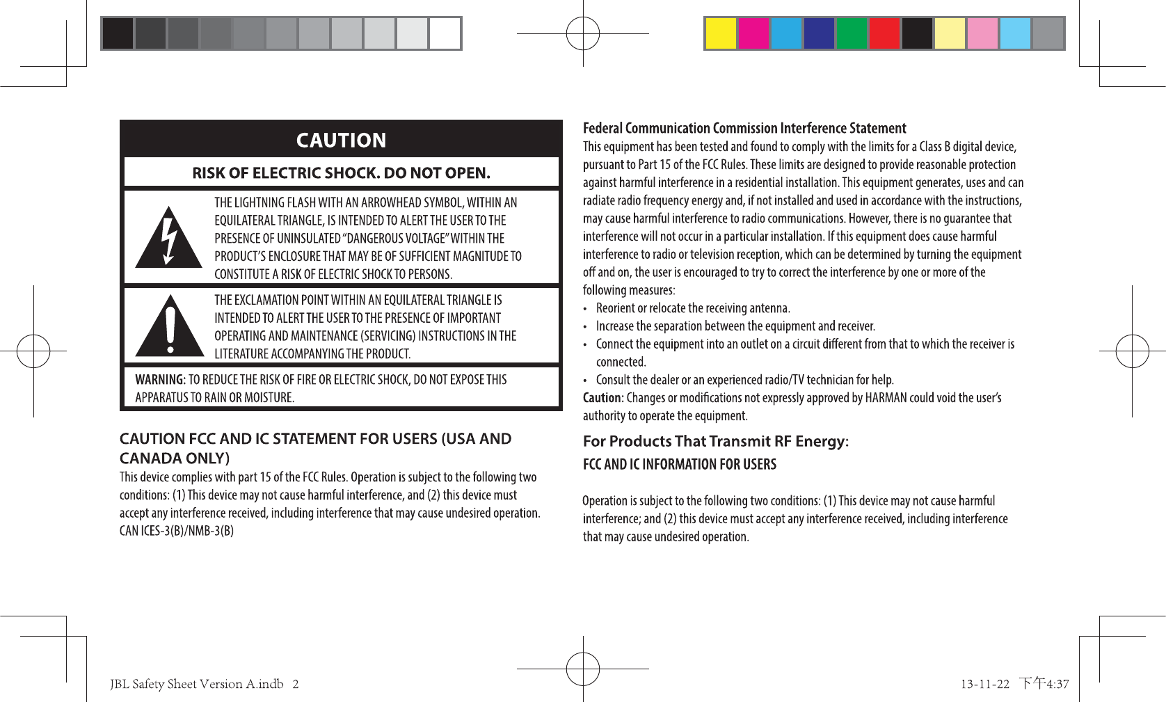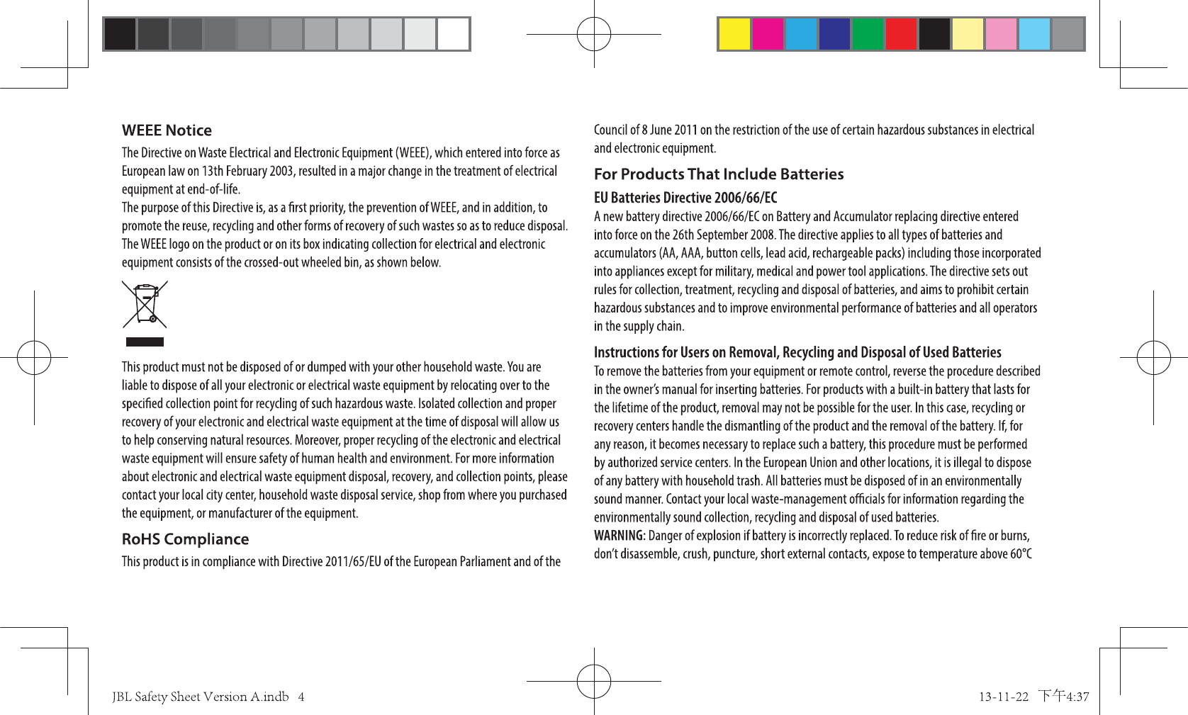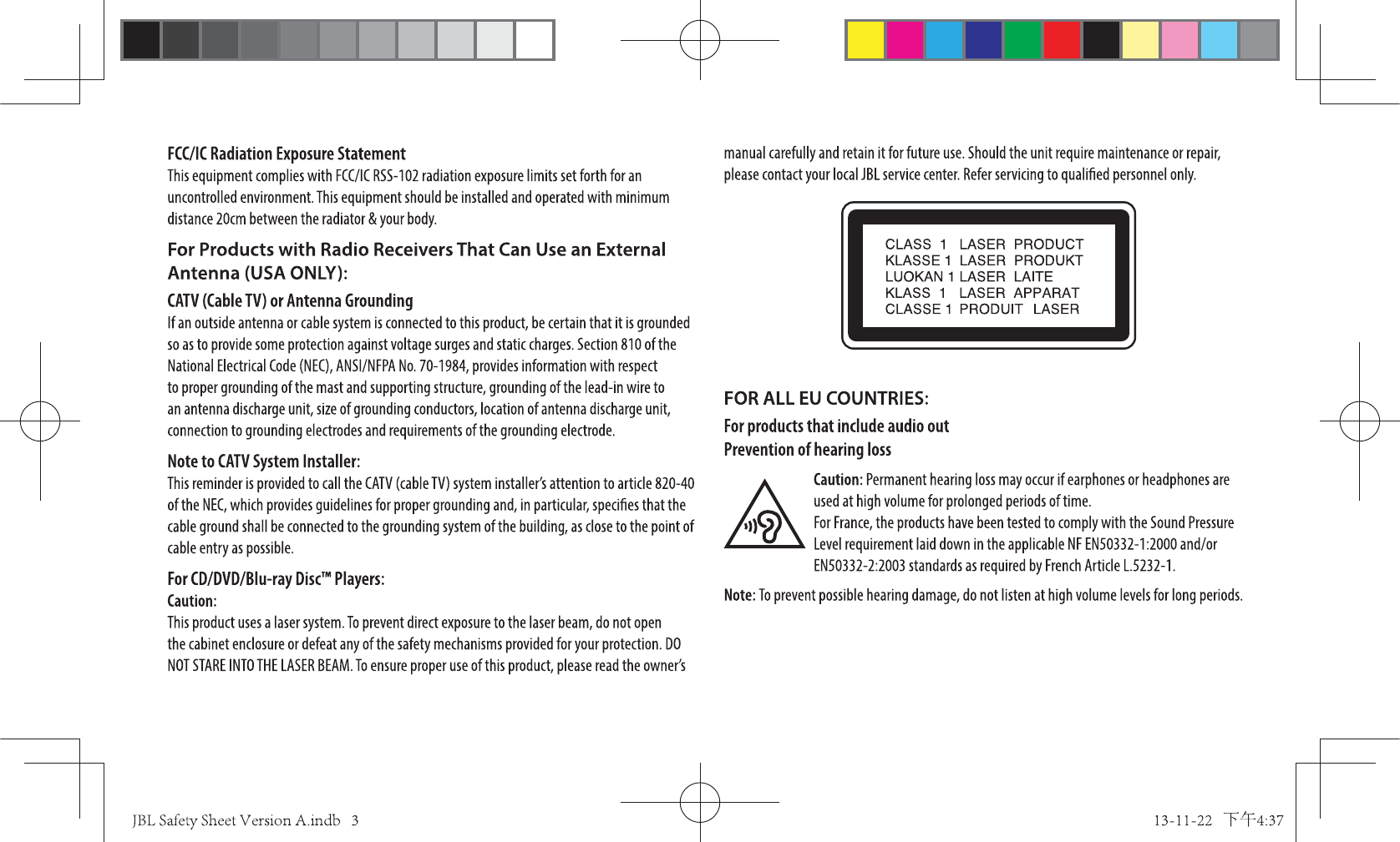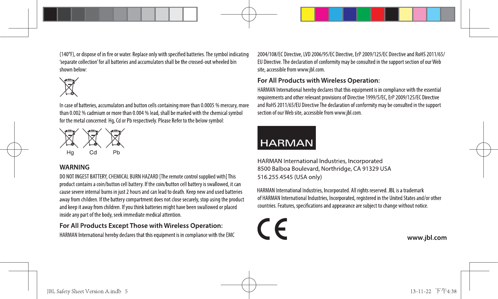 Harman International Industries, Inc Bluetooth Headphone Safety Warranty Manual