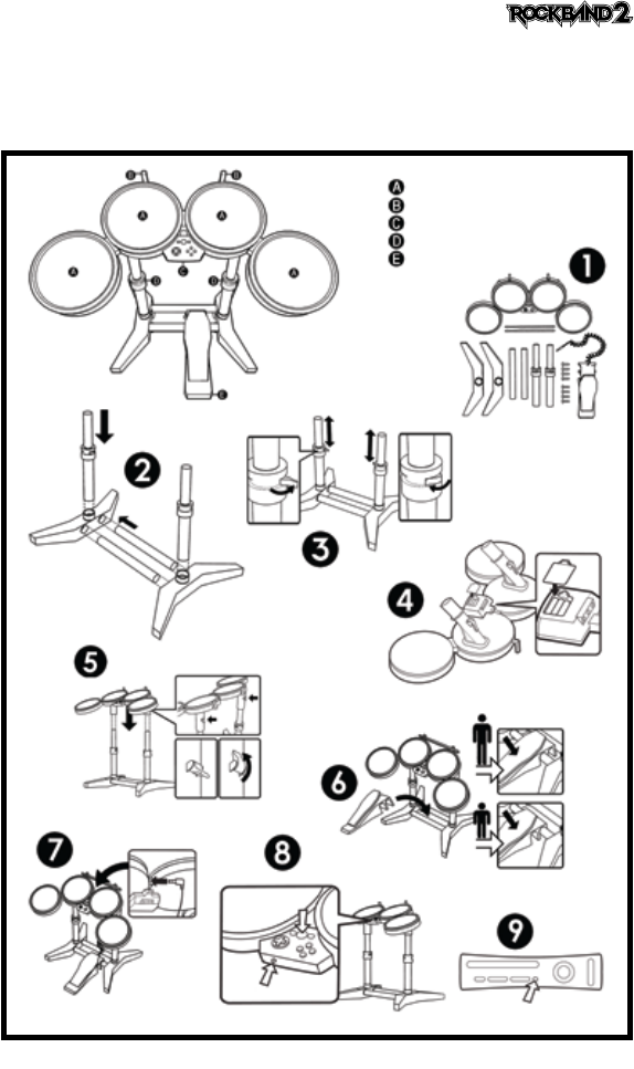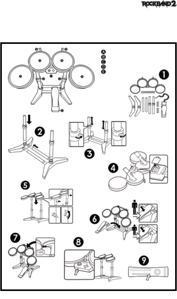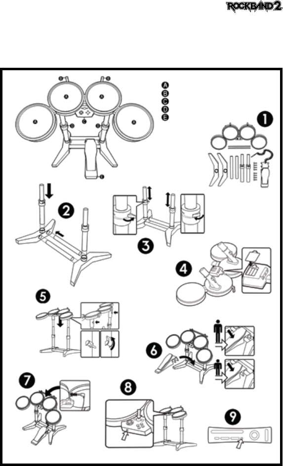 Harmonix Music Systems HMXDRM02 Rock Band 2 XBox Wireless Drum User Manual WW ROCKB2 DRUMS X360 EFIGS r3