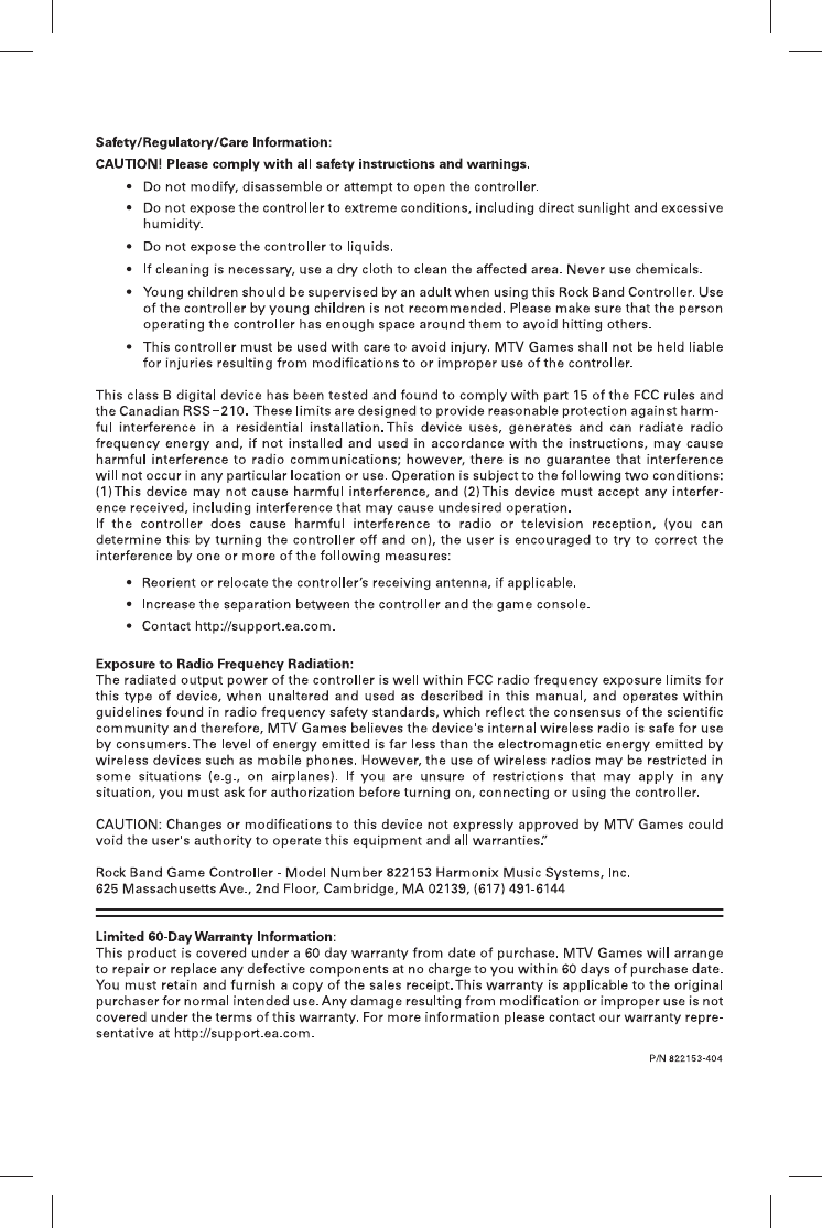 Harmonix Music Systems, Inc.!Rock Band Wireless Guitar For ADAM FCC ID: VFRHMXGTR05!