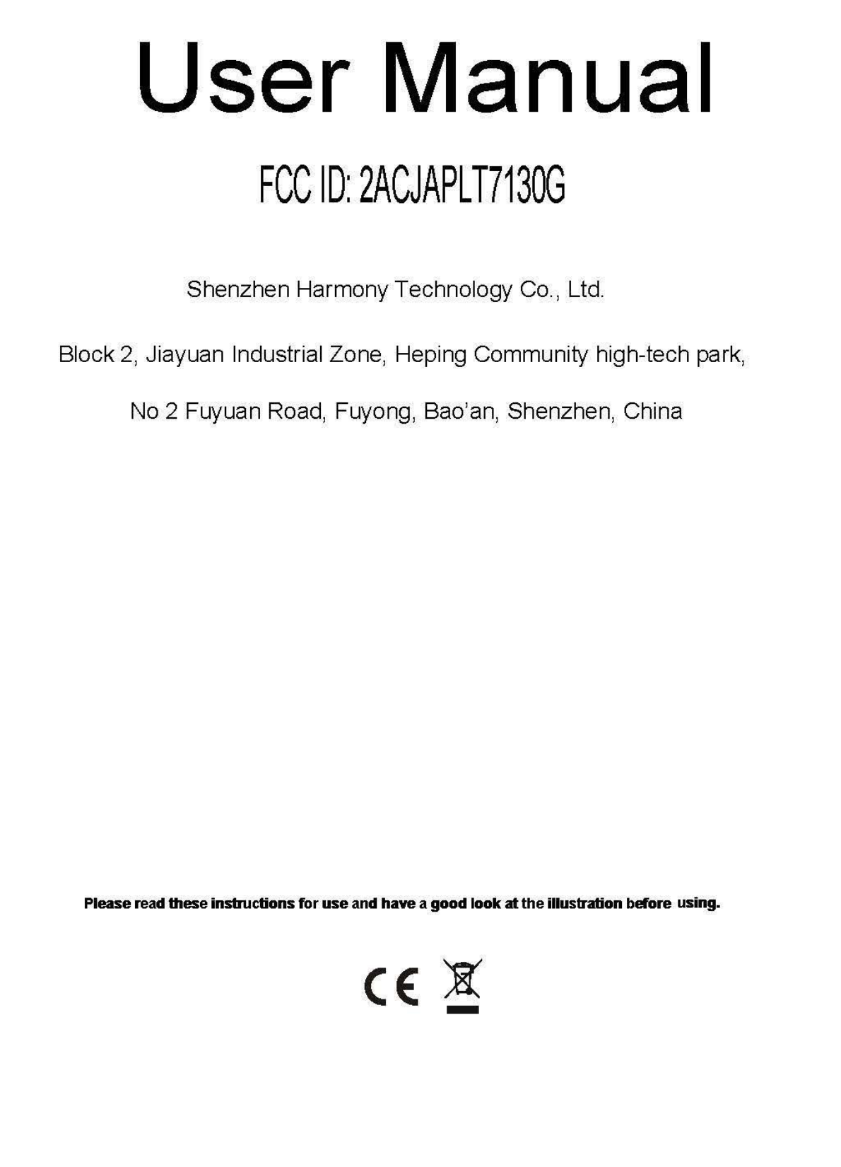 Shenzhen Harmony Technology Co., Ltd Tablet PC Users Manual