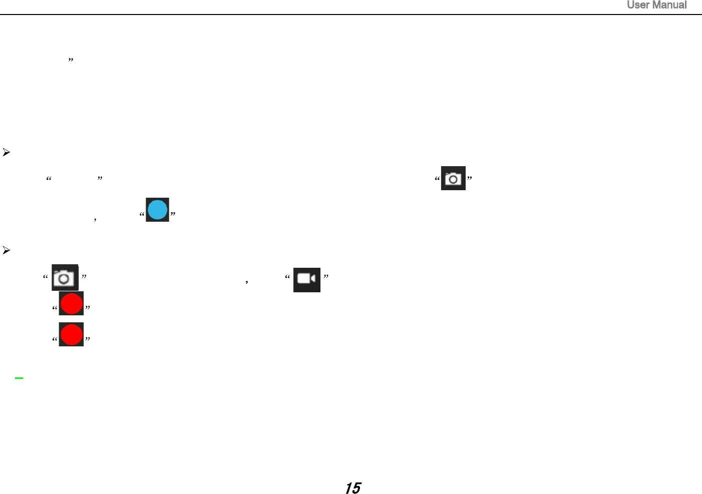 1. Click Camera in application page, device is default at picture taking, icon is