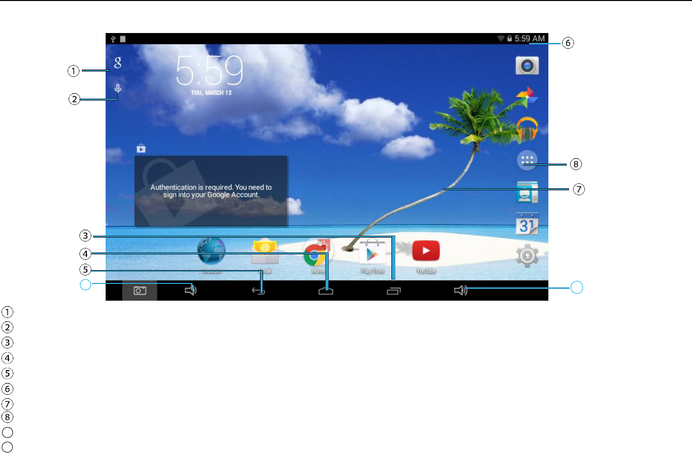 Display of icons and device status, click to turn on notification screen