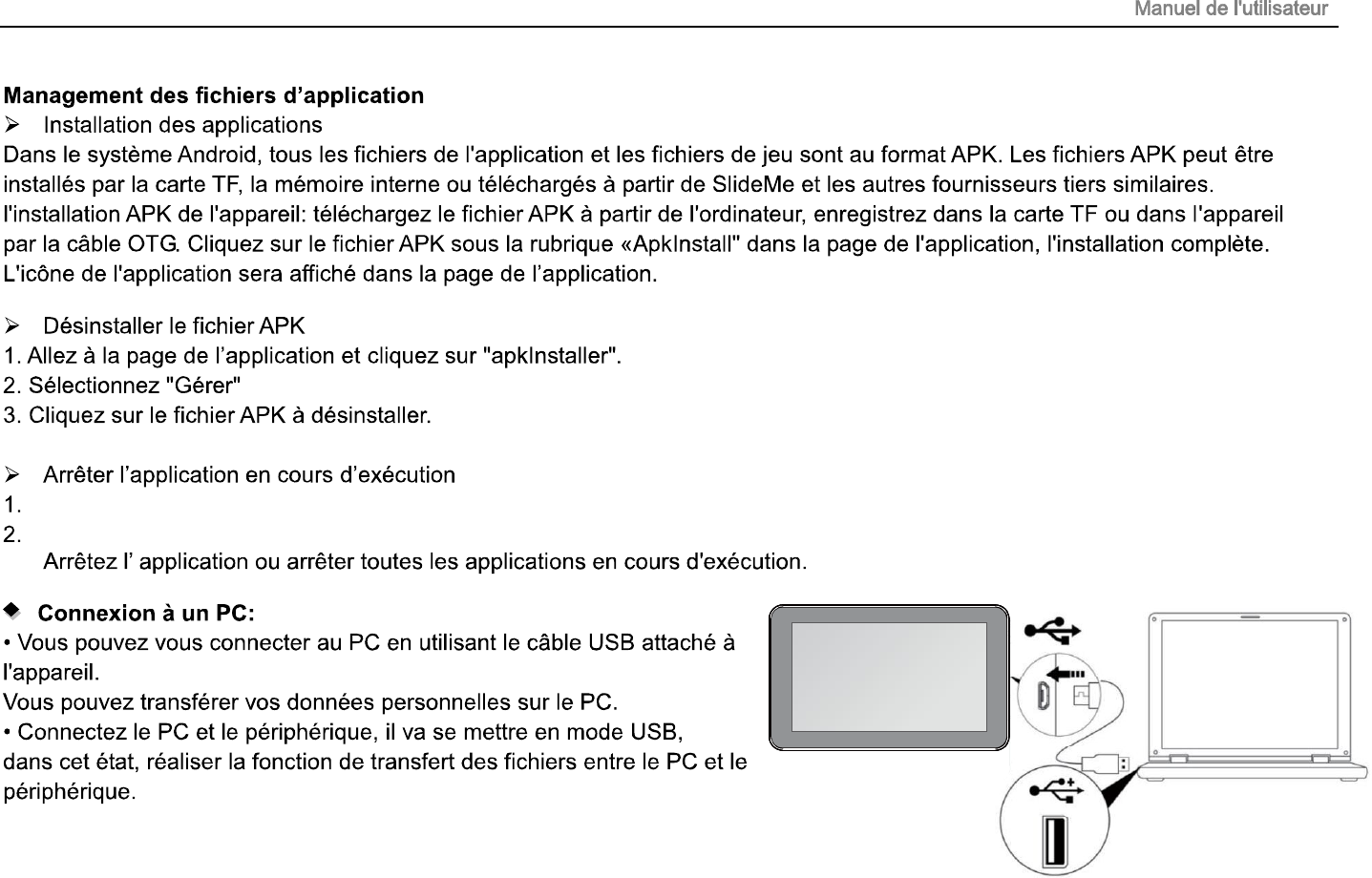 Connectez le port USB avec la câble OTG, il doit détecter un périphérique USB comme une clé USB, cliquez sur "Explorer" pour