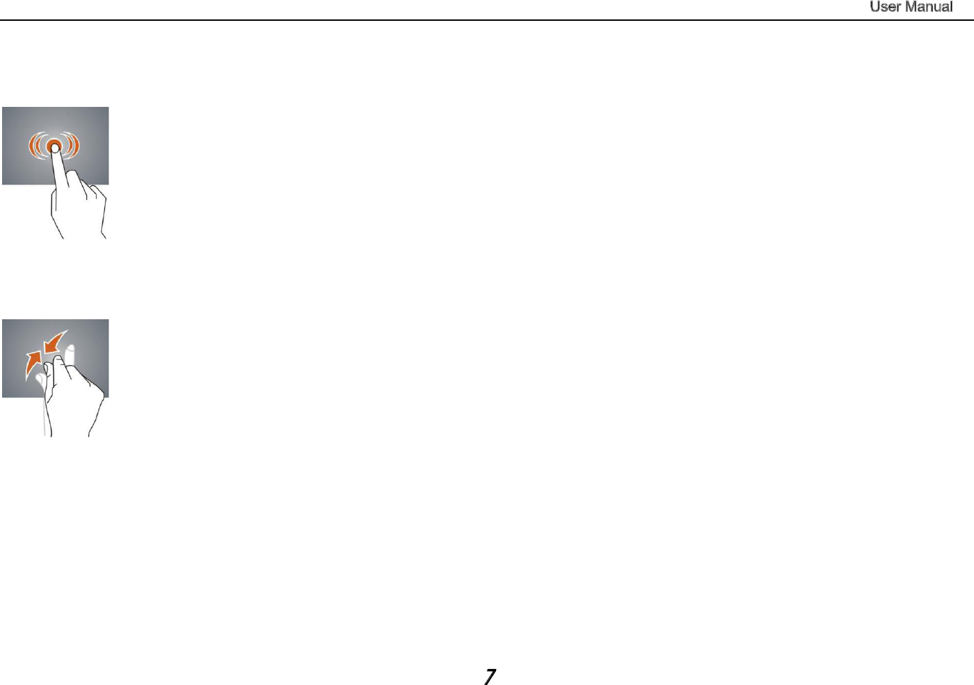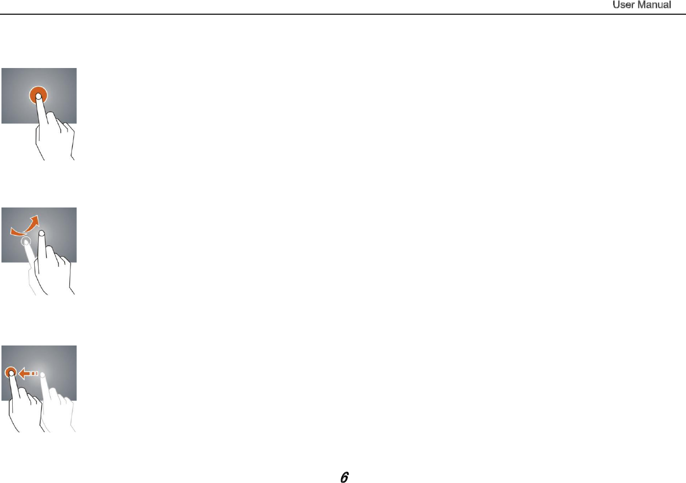 Click -- Use finger or capacity panel pen to touch once, so as to select or activate function, or select menu or turn on applications.