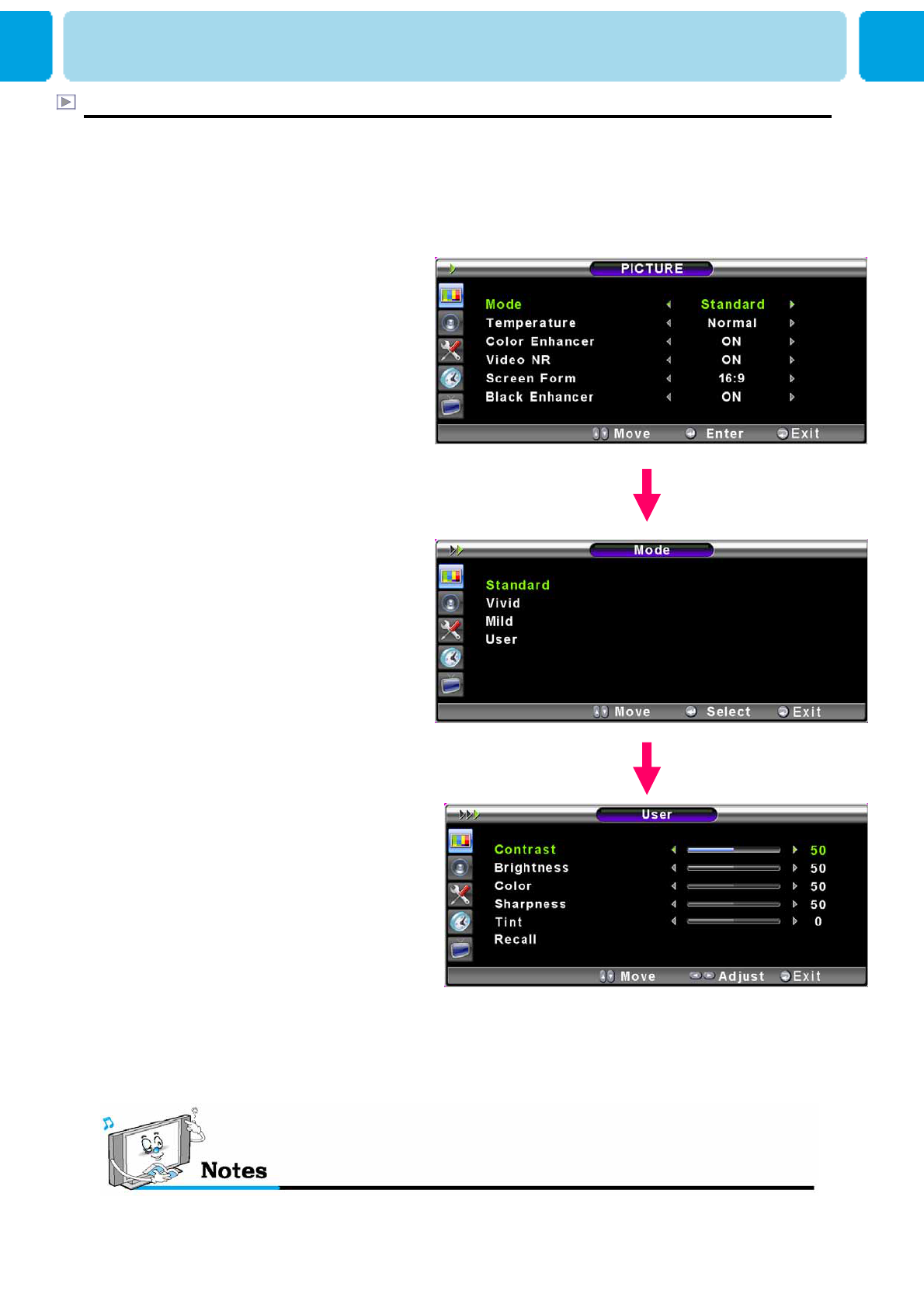 Selectable 5 Mode (Warm1,2, Normal, Cool1,2, User)Color temperature
