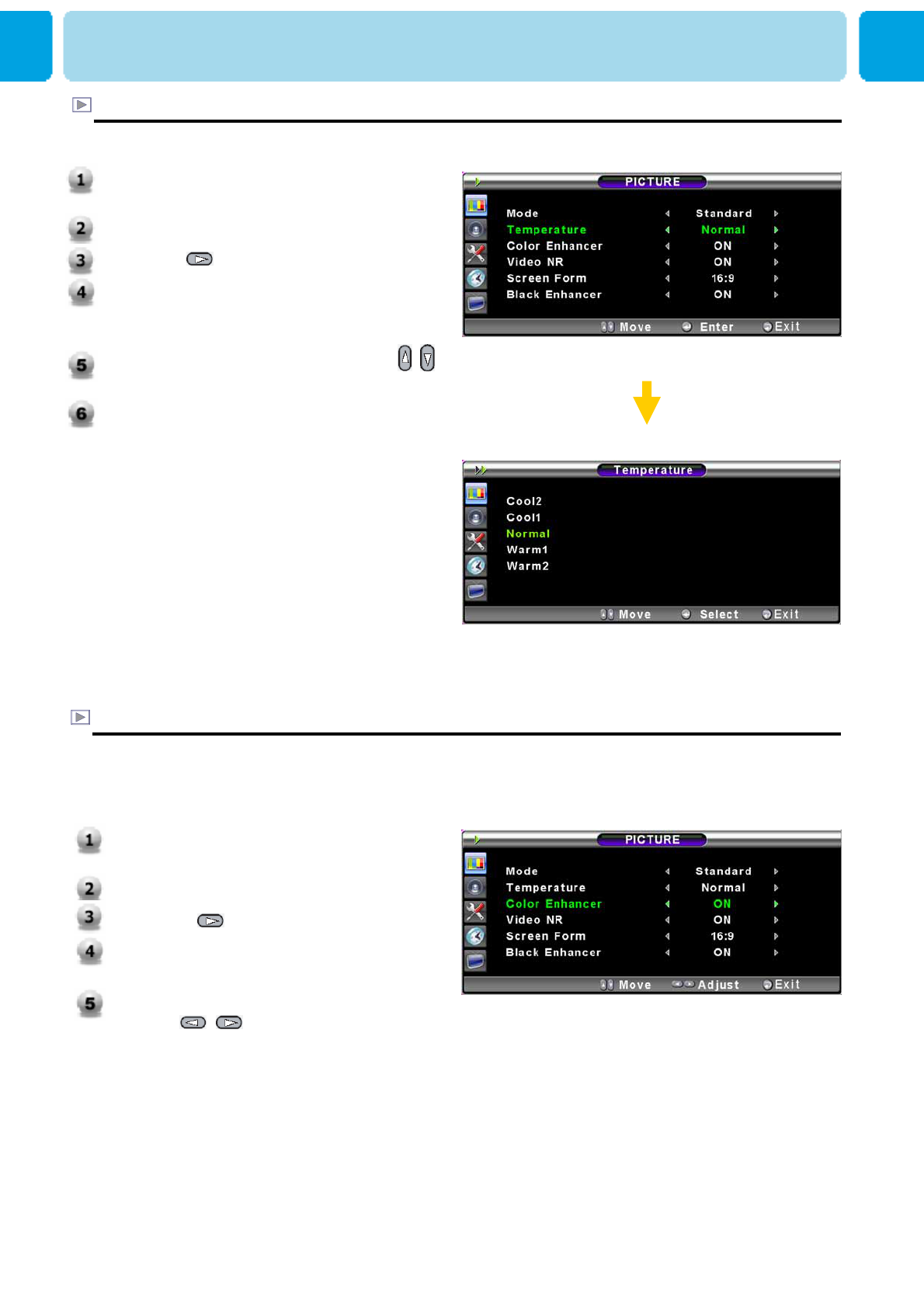 Selectable 5 Mode (Warm1,2, Normal, Cool1,2, User)Color temperature