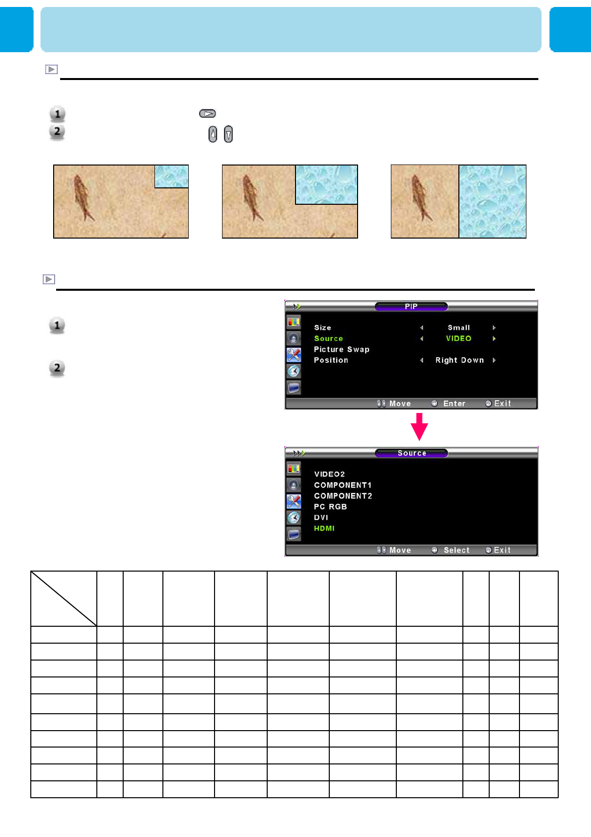 Mini D-Sub 15Pin X 1Port / HDTV Input(480p, 576p, 720P(50/60Hz), 1080i(50/60Hz))PC Input