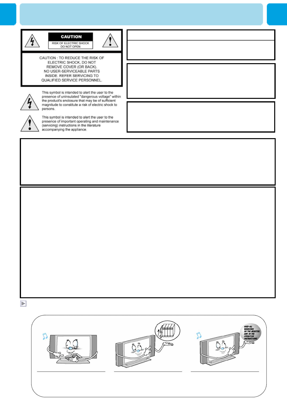 Always be careful when using your Monitor. To reduce the risk of fire, electrical shock, and other