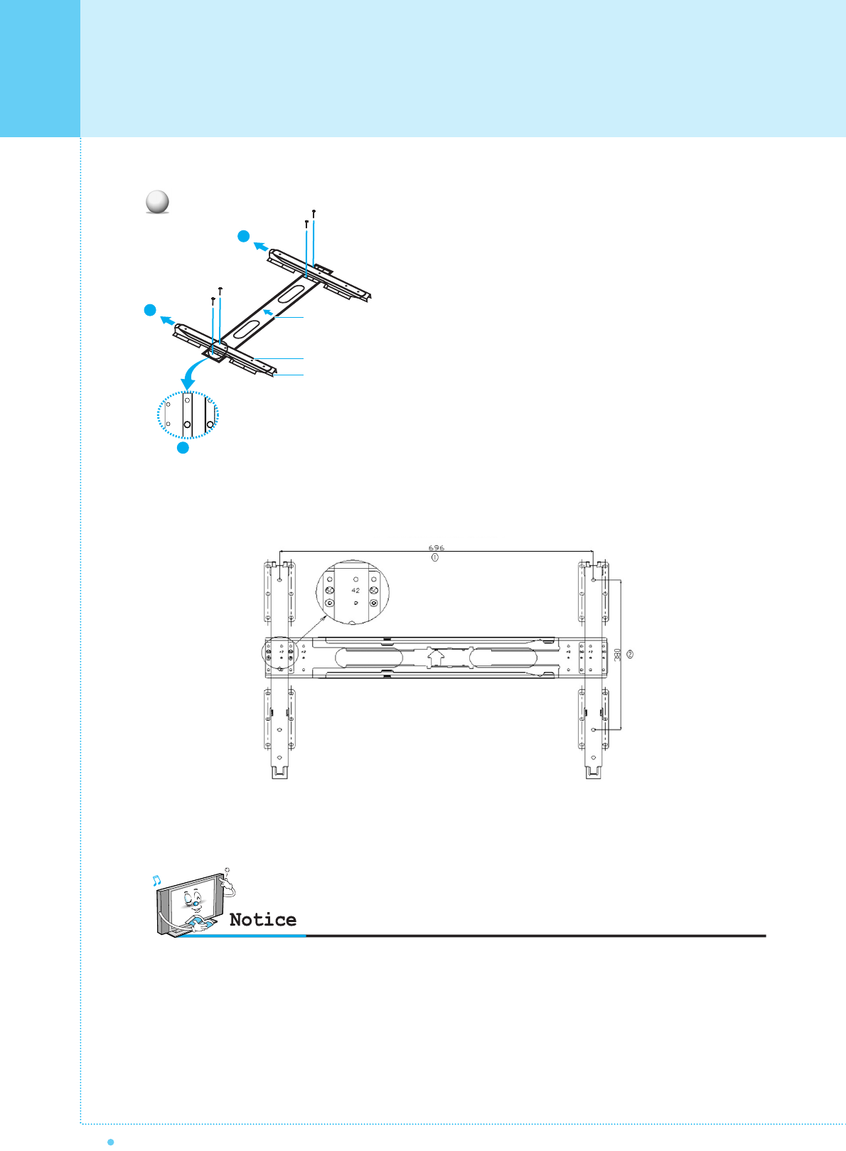 •Please use Hole 1 for Horizontal axis which is printed 50 Inch, and use Hole 2 for Vertical axis.