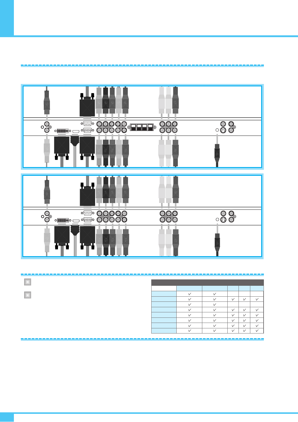 Mini D-Sub 29Pin X 1Port / HDTV Input(480p, 576p, 720P(50/60Hz),1080i(50/60Hz)) / HDCP(Factory Option)