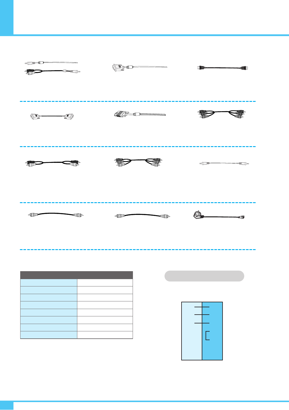 Mini D-Sub 15Pin X 1Port / HDTV Input (480p, 576p, 720P(50/60Hz),1080i(50/60Hz))