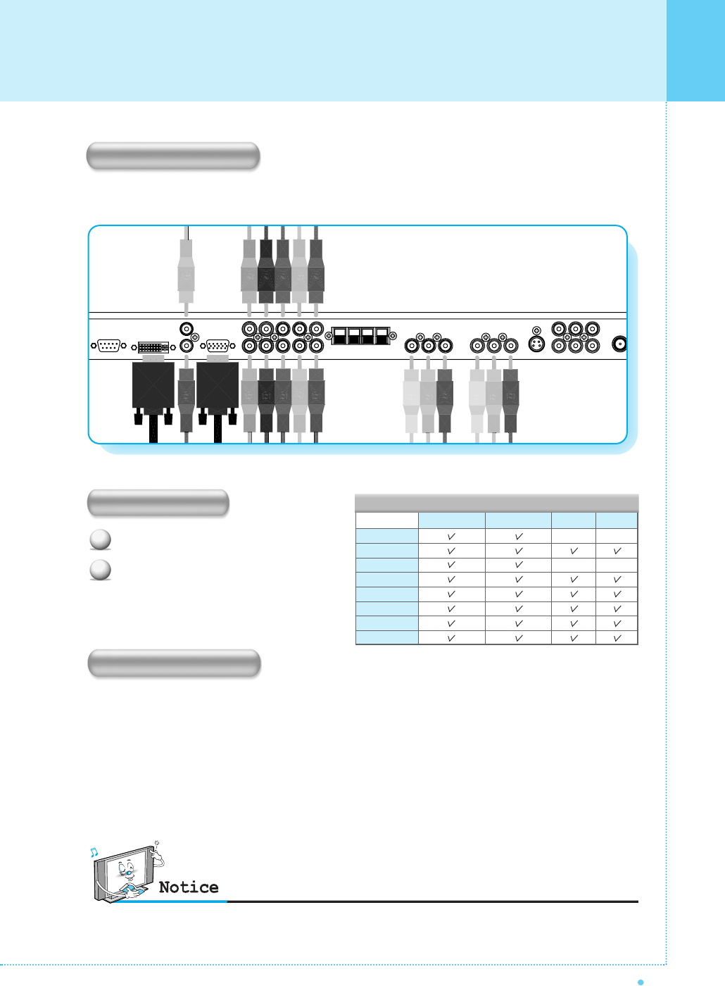 Mini D-Sub 15Pin X 1Port / HDTV Input 480p, 576p, 720P(50/60Hz),1080i(50/60Hz)