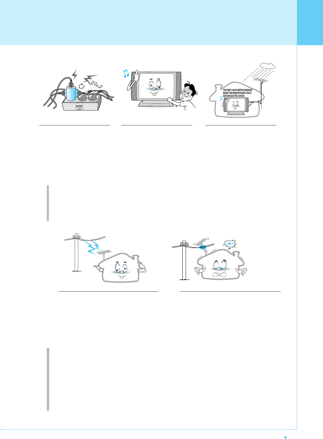 Always be careful when using your the monitor. To reduce the risk of fire, electrical