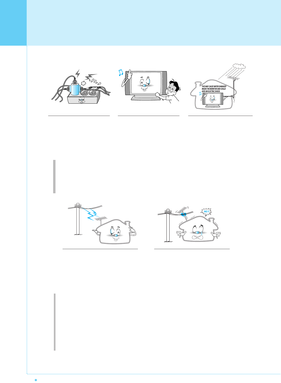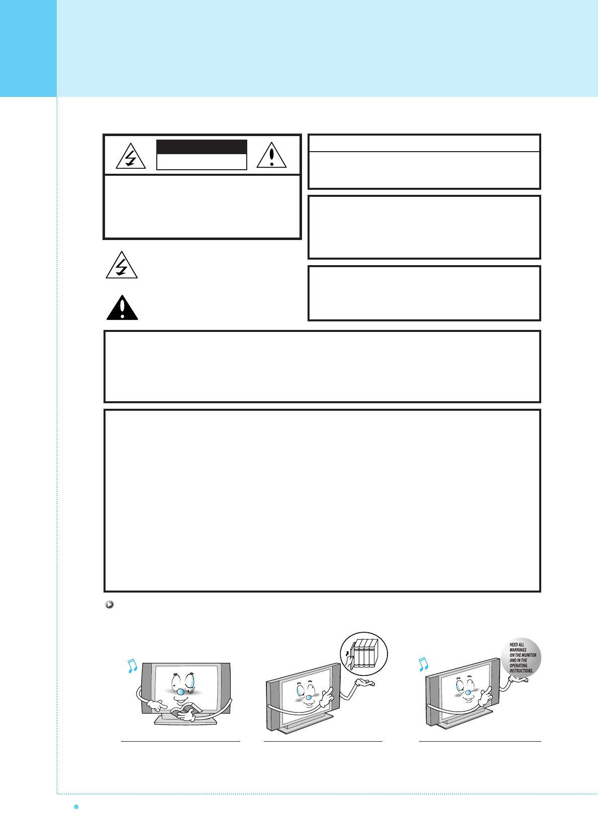 Always be careful when using your Monitor. To reduce the risk of fire, electrical shock,